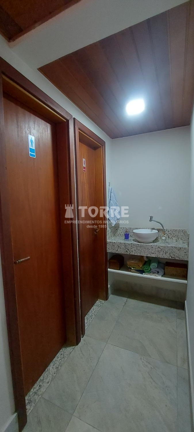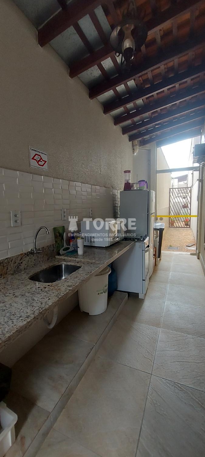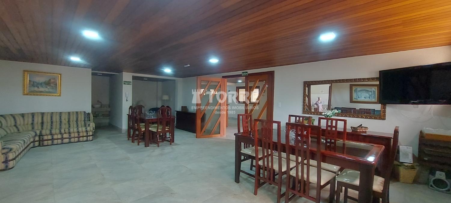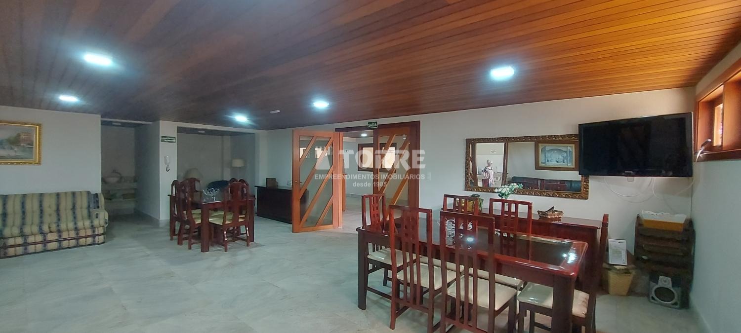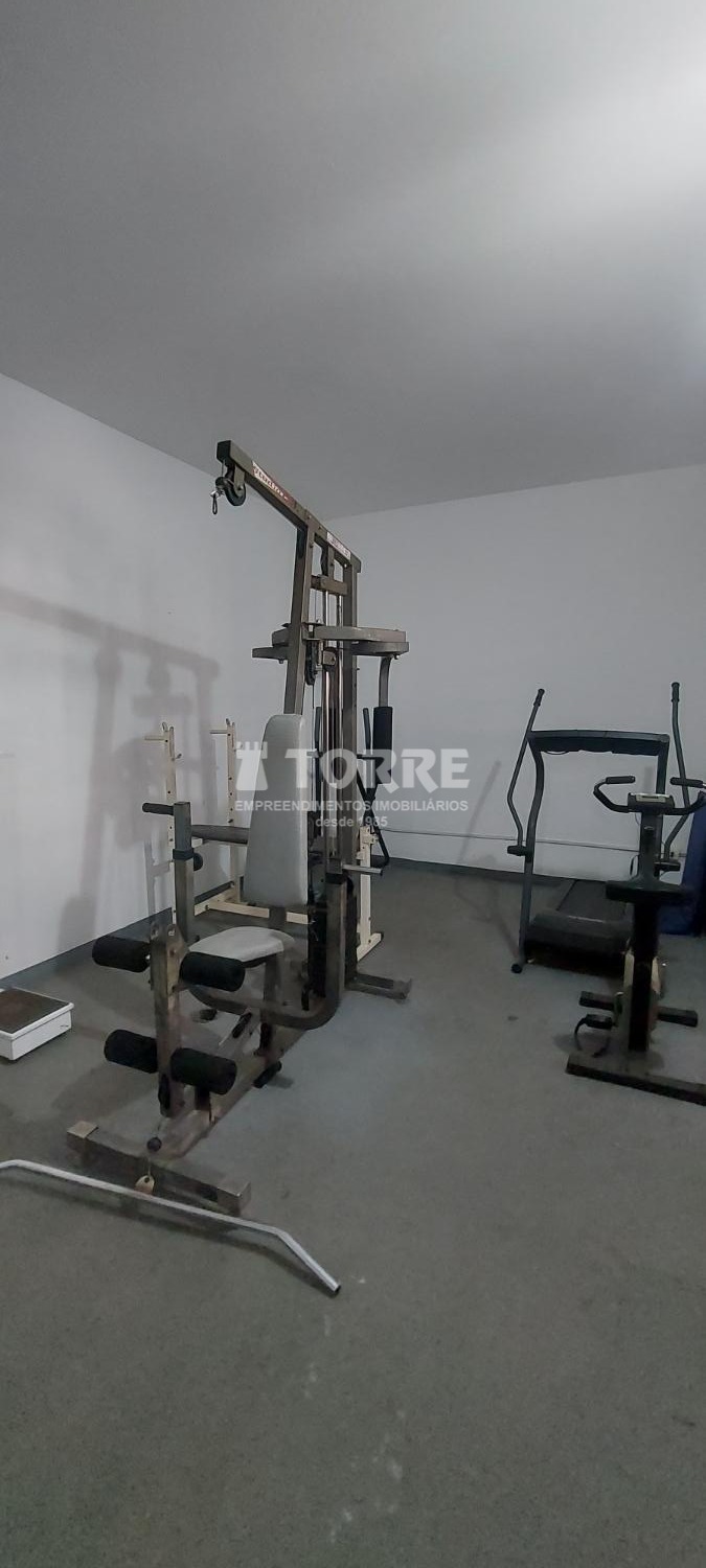 Condomínio com salão de festas, espaço de churrasqueira e mini academia.