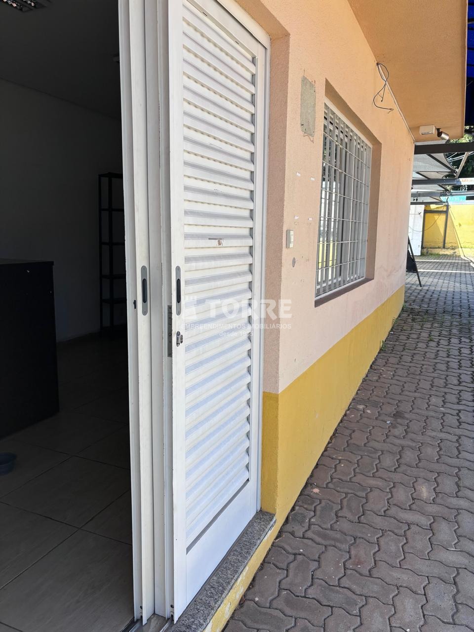 Amplo espaço de estacionamento, banheiro e copa.