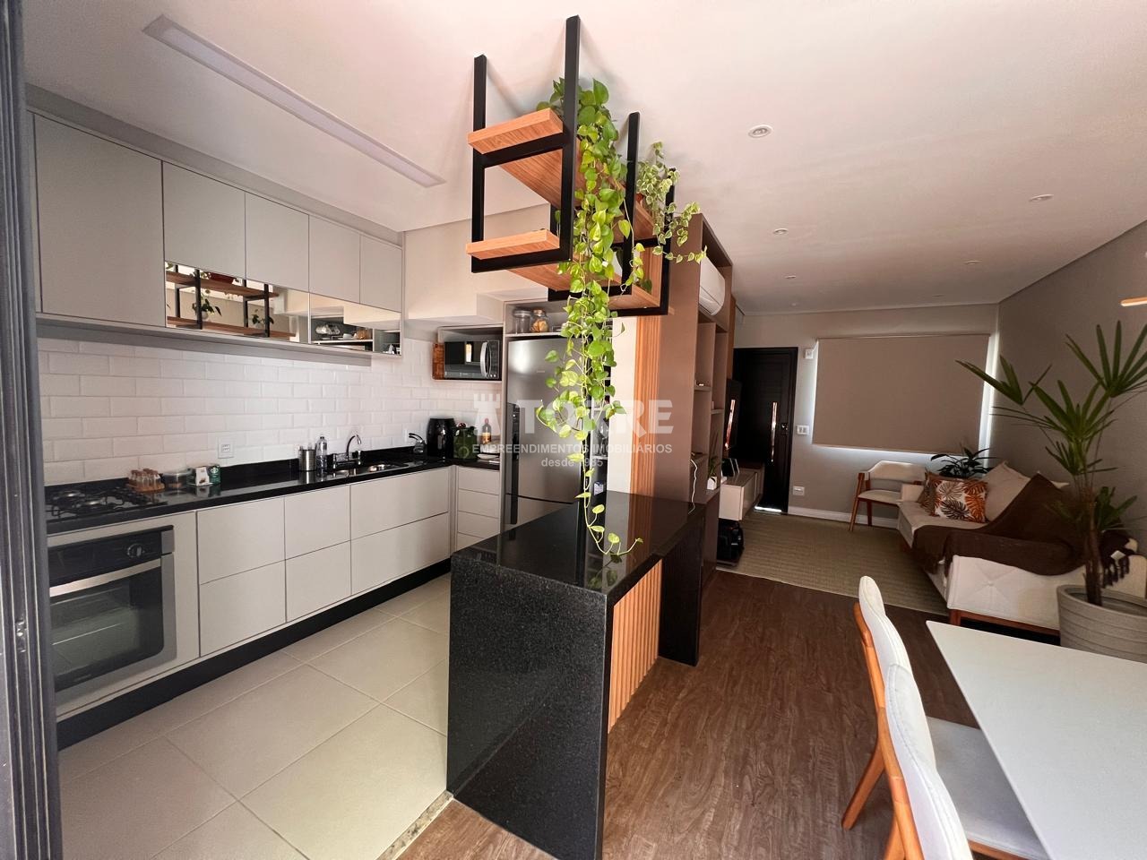 São 2 suites, boa sala bem iluminada com cozinha integrada, acabamento moderno e de muito bom gosto, 02 vagas de garagem paralelas.