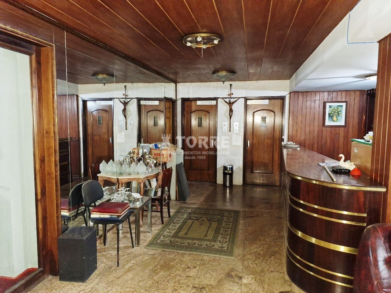 São 8 andares com 4 apartamentos por andar, 2 elevadores, recepção com salão de espera e bar.